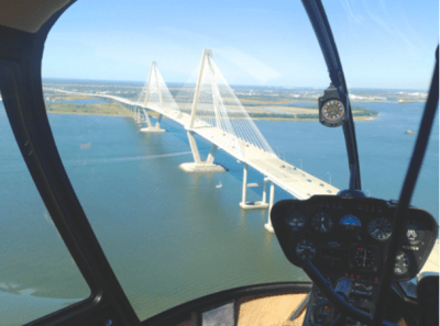 During a 30 minute tour, the helicopter smoothly glides through the air reaching the perfect height for spectacular views of the Low Country; the homes on the battery, the church steeples, and the beautiful blue ocean.