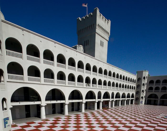 A community unto itself, The Citadel’s 300-acre campus consists of more than a dozen buildings designed in a Spanish Moorish architectural style. The main barracks surround the iconic parade ground made up of red and white checkerboard squares.